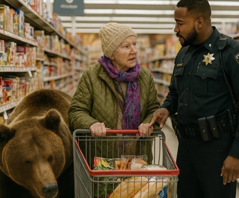 An elderly woman walked into a supermarket with her little bear to buy groceries: when the police tried to remove the woman and the wild animal from the…