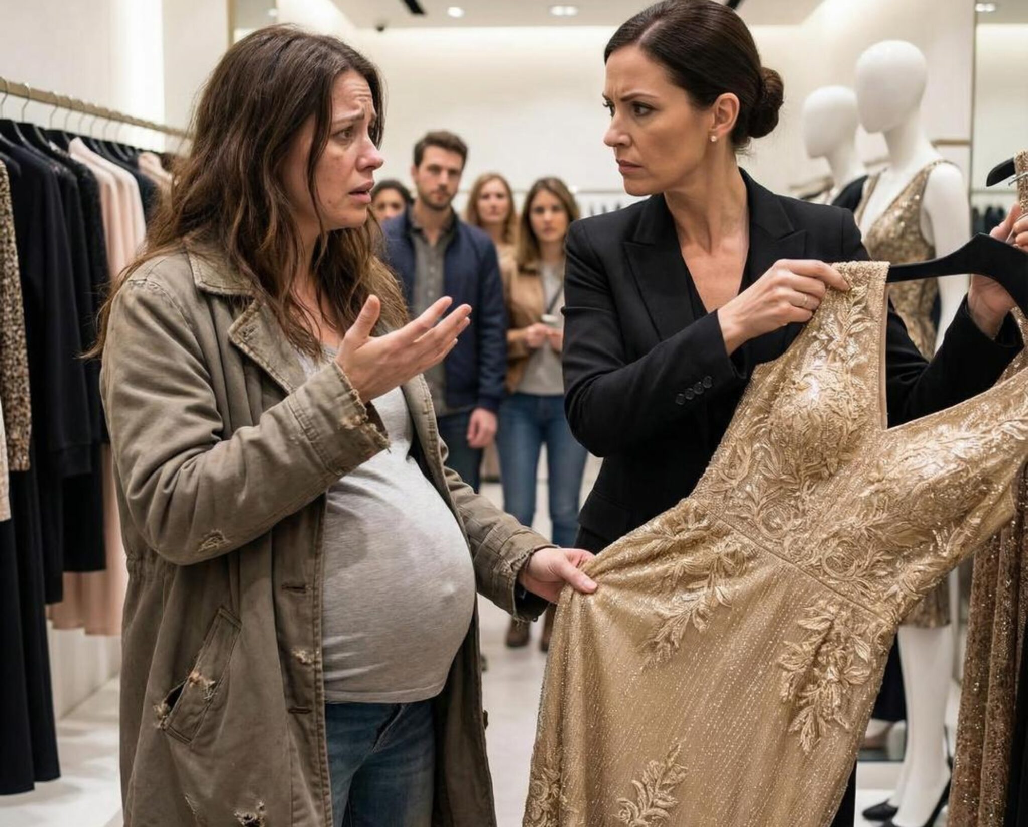 My Water Broke in a Boutique — The Cashier Blocked Me Until a Stranger’s Voice Cut Through the Chaos