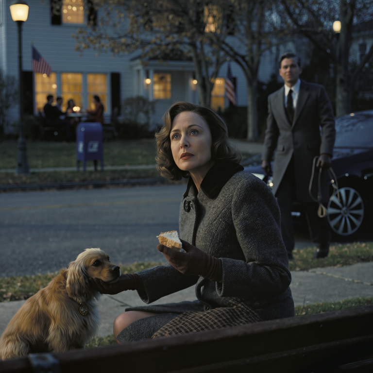 I was sitting alone out in the cold, looking through the window at my family happily eating Christmas dinner. I broke my sandwich in half—the last thing I had—and gave it to a stray dog that was shivering. When he lifted his head, I froze: there was a small diamond on his collar. I followed the tag and dialed the number engraved on it… and just minutes later, a black Mercedes suddenly pulled up right in front of the house. A butler stepped out and said the dog belonged to someone who had trouble getting around—and I had taken care of him years ago. The moment he saw me, everything started to turn i