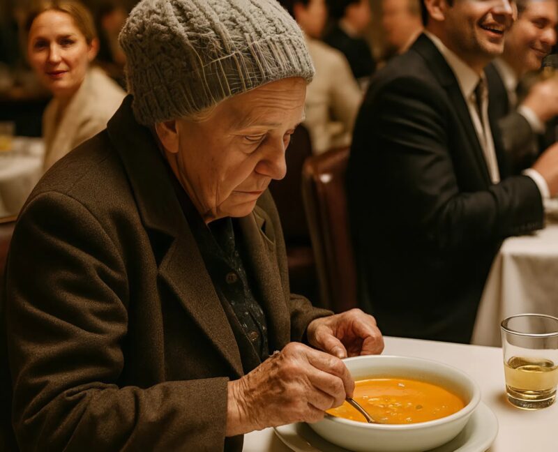 A woman in old clothes walked into a fancy restaurant and ordered the cheapest soup: all the guests laughed at her — until something unexpected happened